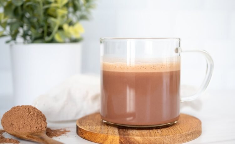 This hot chocolate combines cocoa powder, healthy fats, warming spices, and natural sweeteners for a cozy cup of cocoa. You can use organic whole milk for a traditional richness, or swap in coconut or almond milk for a dairy-free version. Coconut milk is higher in fat to make it even creamier. Gelatin helps thicken and adds hair, nail, and gut health benefits.