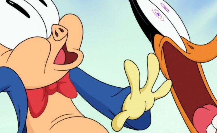 The Looney Tunes have admittedly fallen on hard times in recent years. As far as animation was concerned, David Zaslav’s feckless régime at Warner Brothers saw the medium as a whole as an easy cut, leaving a historic library in limbo until fairly recently. One near casualty of this attitude was this very film: directed by Peter Browngardt of the lovingly-made 2020 series Looney Tunes Cartoons, a rather classical collection of animated shorts which brought the wit of a new generation of artists who studied at the altar of Chuck Jones, Bob Clampett, Friz Feleng, Tex Avery and their contemporaries. The plot of The Day The Earth Blew Up feels fitting for characters who have been in search of a new home; Daffy Duck and Porky Pig have to rescue their house from condemnation. They’re thrown into their adventure because they desperately need to raise money for repairs after a cruel inspector threatens to condemn and seize their home. Sadly for Daffy and Porky, their first good prospect at a stable job also happens to be a front for an alien invasion.