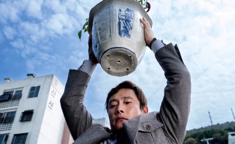 Director Park’s eye for expressive camerawork ensures a sense of dynamism and urgency that brings wit to the absurdity of Man-su’s situation, whether it’s a rig strapped to a dog or the comedic timing of a low-angle shot as our murderous middle manager considers dropping a heavy plant pot on a rival to take him out. One particularly lovely (and amusing!) detail is a minor one: Si-one has a matching raincoat with the family dogs. This attention to detail and precision in the film’s visual schema creates a world where we understand the stakes, and although we might not share Man-su’s antisocial intentions, they do make sense in a bizarre way.