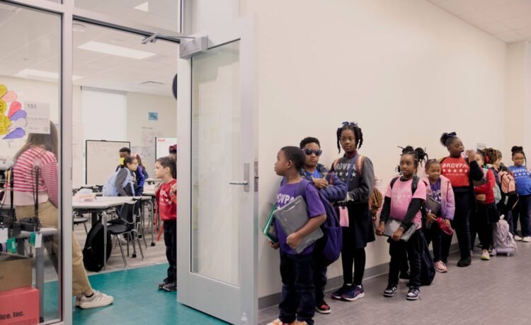 On a December morning at the school, young students talked quietly with each other in the hall as they lined up to go from math class to English language arts. All told, the switch took less than five minutes. “We’re at the end of the second nine weeks, so we’ve had a lot of practice,” said GiGi Boudreaux, the assistant principal.